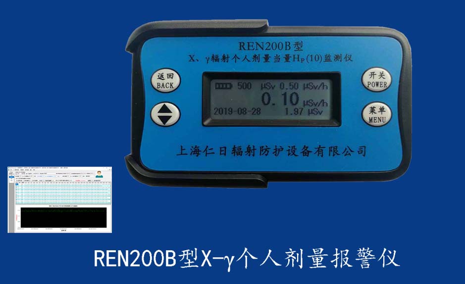 REN200A型X、γ輻射個(gè)人劑量當(dāng)量HP(10)監(jiān)測(cè)儀(簡(jiǎn)稱:個(gè)人劑量報(bào)警儀)內(nèi)置高靈敏度蓋格計(jì)數(shù)管為探測(cè)器,主要用來(lái)監(jiān)測(cè)各種放射性工作場(chǎng)所的X、γ以及硬β射線的輻射,具有響應(yīng)快,測(cè)量范圍寬的特點(diǎn)。能顯示工作場(chǎng)所的劑量當(dāng)量率和累積劑量,更換電池時(shí),日期及累積數(shù)據(jù)能永久保存。可選配RenRiPersonal個(gè)人劑量管理軟件,該軟件可存儲(chǔ)多個(gè)人的歷史數(shù)據(jù),能記錄日累積、月累積、年累積、輻照時(shí)長(zhǎng)、計(jì)算平均劑量率、扣除或不扣除本底輻射,且以文字和圖譜的方式展現(xiàn)數(shù)據(jù)。廣泛應(yīng)用于核電站、加速器、鋼鐵、化工、同位素應(yīng)用、工業(yè)X、γ無(wú)損探傷、放射醫(yī)療、鈷源治療、γ輻照、放射性實(shí)驗(yàn)室、核設(shè)施周圍環(huán)境監(jiān)測(cè)等領(lǐng)域中的工作人員進(jìn)行個(gè)人安全